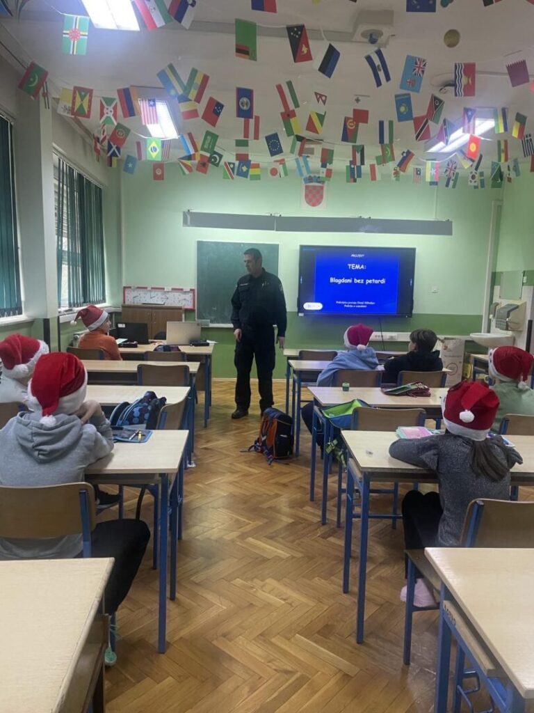 U srijedu, 17. prosinca, našu je školu posjetio kontakt-policajac Robert Vrbešić koji je u četvrtim razredima u Viljevu i Podravskoj Moslavini održao edukativno predavanje na temu „Blagdani bez petardi“.