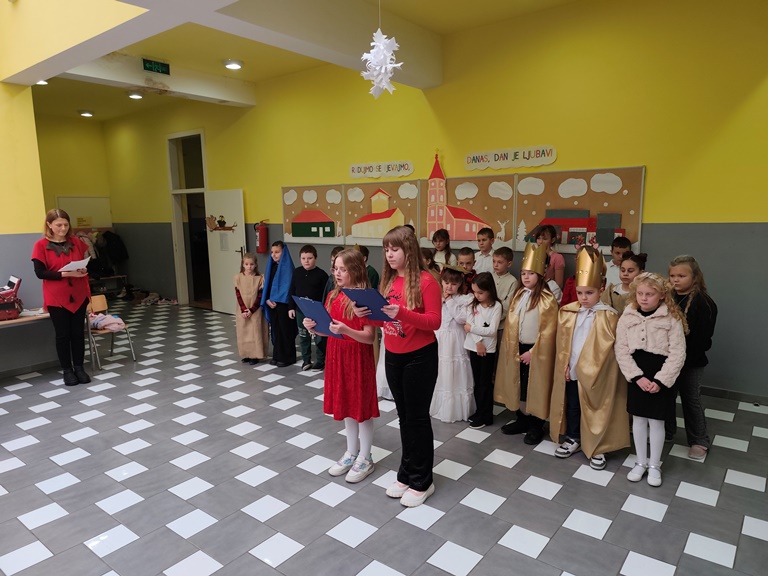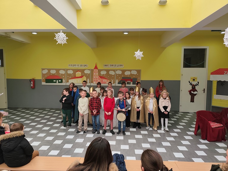 U blagdanskom ozračju, nakon okupljanja, gledanja animiranog filma o Božiću te objeda, uslijedila je božićna priredba.