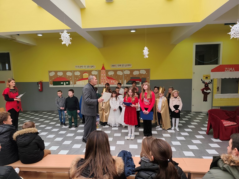 Slijedio dolazak Djeda Božićnjaka koji je darivao učenike i predškolce.