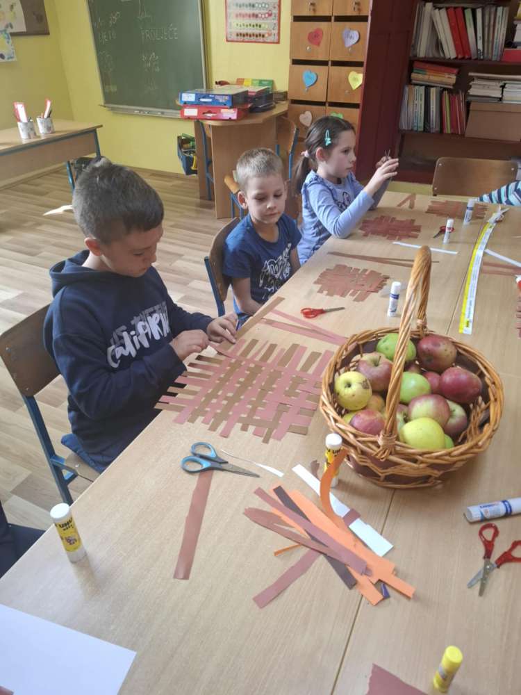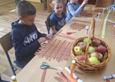 - Izrada pletenih košara i modela jabuka od kolaž papira