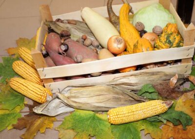 Svaki je razred uredio svoj stol u blagovaonici s plodovima jeseni, domaćim proizvodima od brašna, kolačima, cvijećem i stolnjacima.