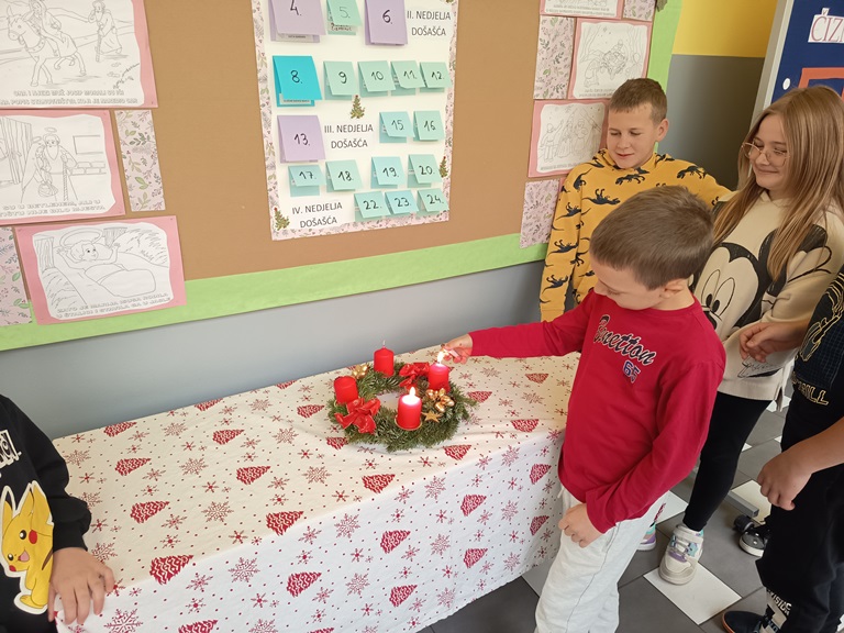 Ovaj redak donosi prorok Izaija koji govori o dolasku spasitelja iz roda Jišajeva iz Betlehema. Danas, u Područnoj školi Moslavina, zapalili smo drugu adventsku svijeću. Ova svijeća naziva se još i betlehemskom svijećom jer podsjeća nas na mjesto u kojem se Isus rodio. Bog izabire mali i nevažni gradić za rođenje Isusa, te izabire neznatne i malene koji će biti nosioci samoga Boga.
