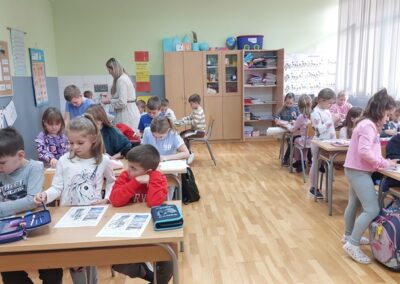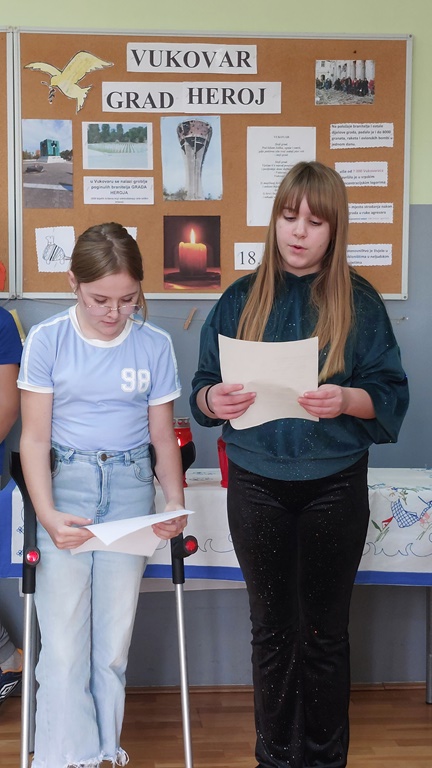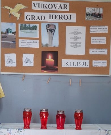 Nakon rješavanja listića učenici su okružili pano koji je govorio o gradu heroju – Vukovaru.