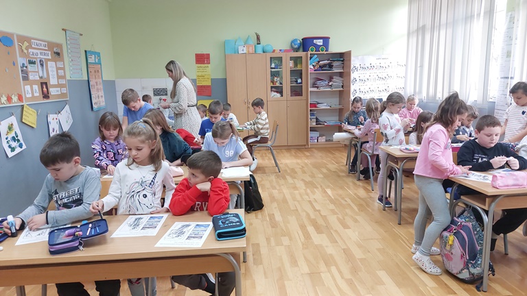Nakon prezentacije učenici su rješavali listić na kojem su trebali složiti i zalijepiti vukovarski vodotoranj te riješiti križaljku o Domovinskom ratu.