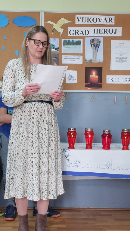 Uz zapaljenje lampione, djevojčice 4.r. Leona i Doris pročitale su Psalam 23, Gospodin je Pastir moj, a vjeroučiteljica Kristina Černoga je pročitala Molitvu za Vukovar.