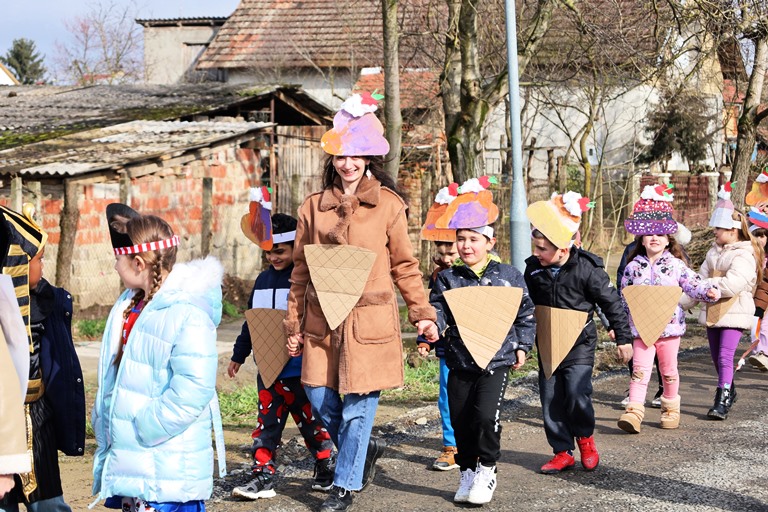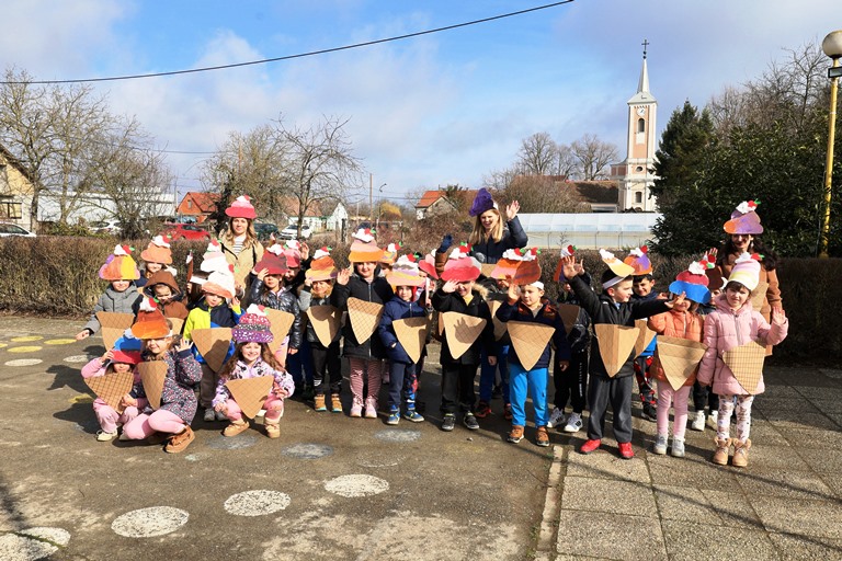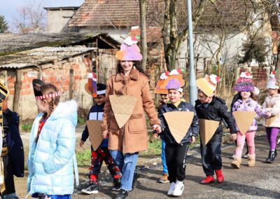 U centru sela izveli su nekoliko prigodnih pjesama, zaradili slatkiše i uputili se u školu gdje su ih čekale mirisne i slatke krofne.